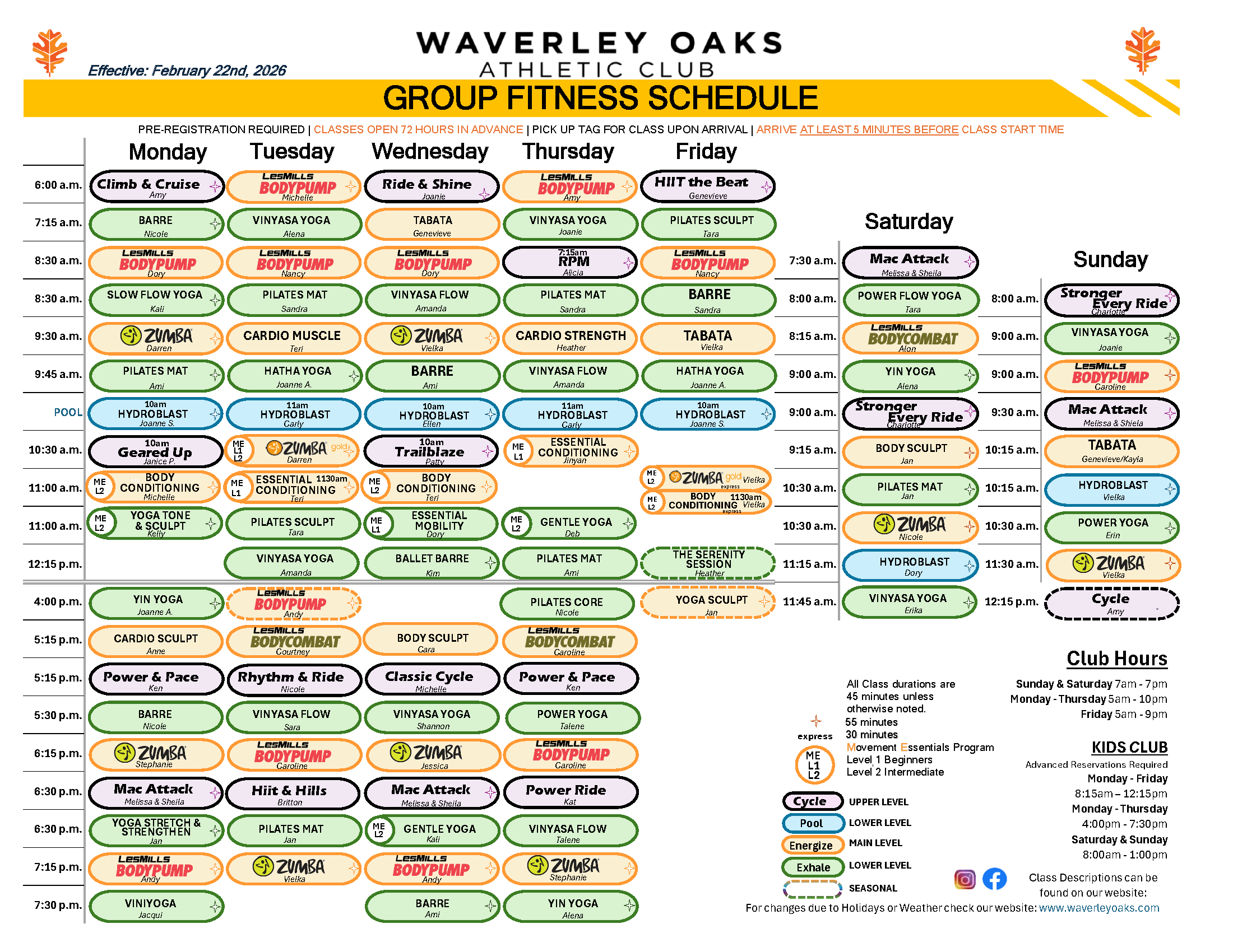 Whether you’re looking to build strength, improve flexibility, boost endurance, or simply add variety to your workouts, our diverse group fitness class lineup offers something for every fitness level and interest.